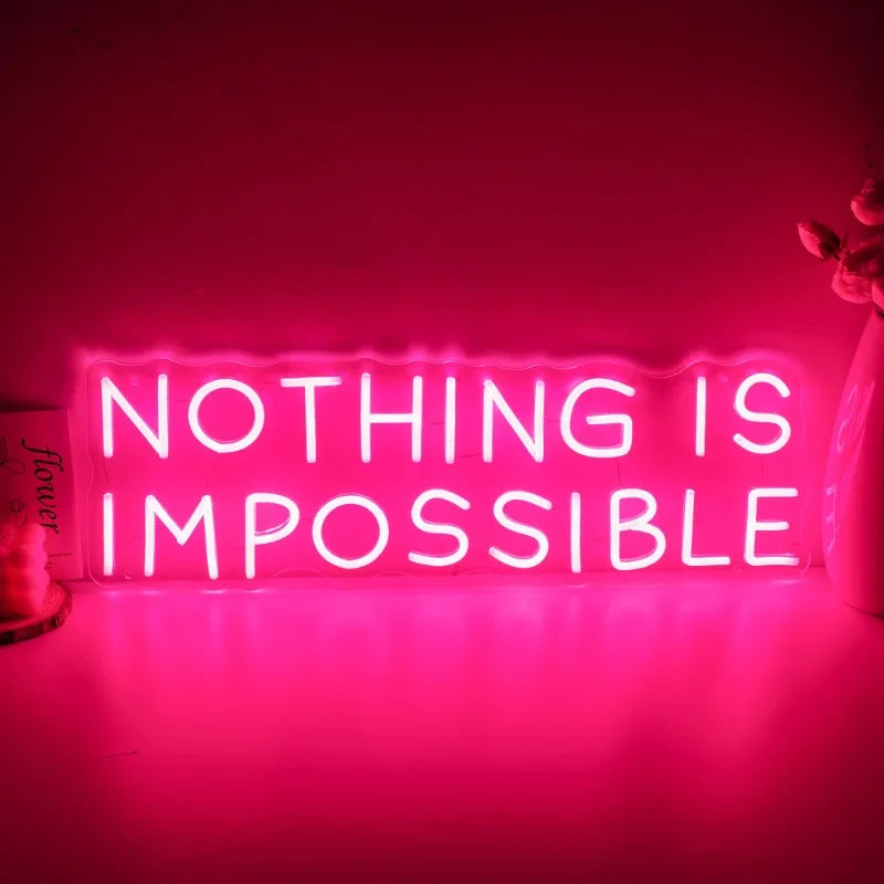 GlowInspire Aanpasbaar "NOTHING IS IMPOSSIBLE" Neon Bord – USB-aangedreven LED Muurkunst voor Slaapkamers, Esthetische Decoratie en Personalisatie – CE/FCC Gecertificeerd