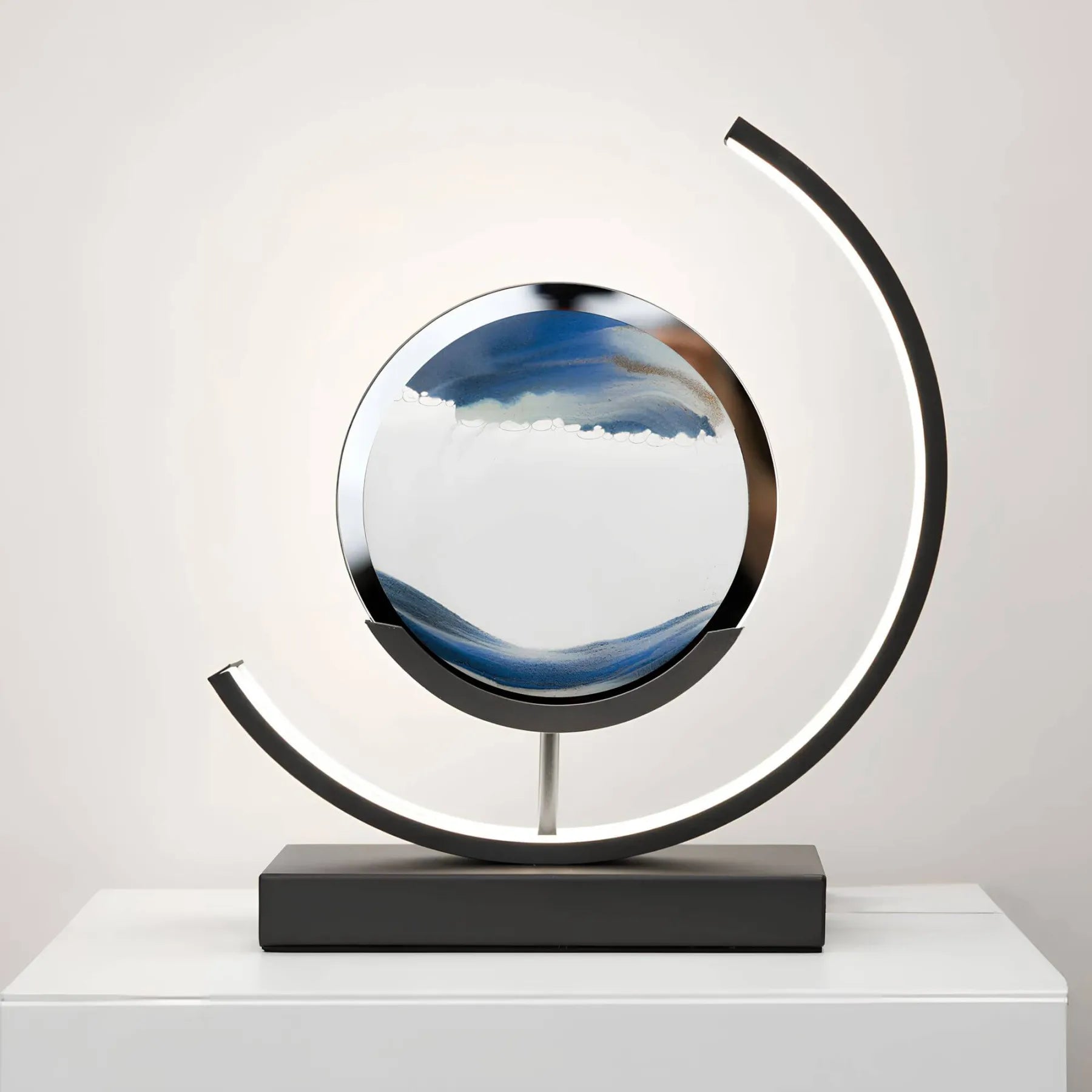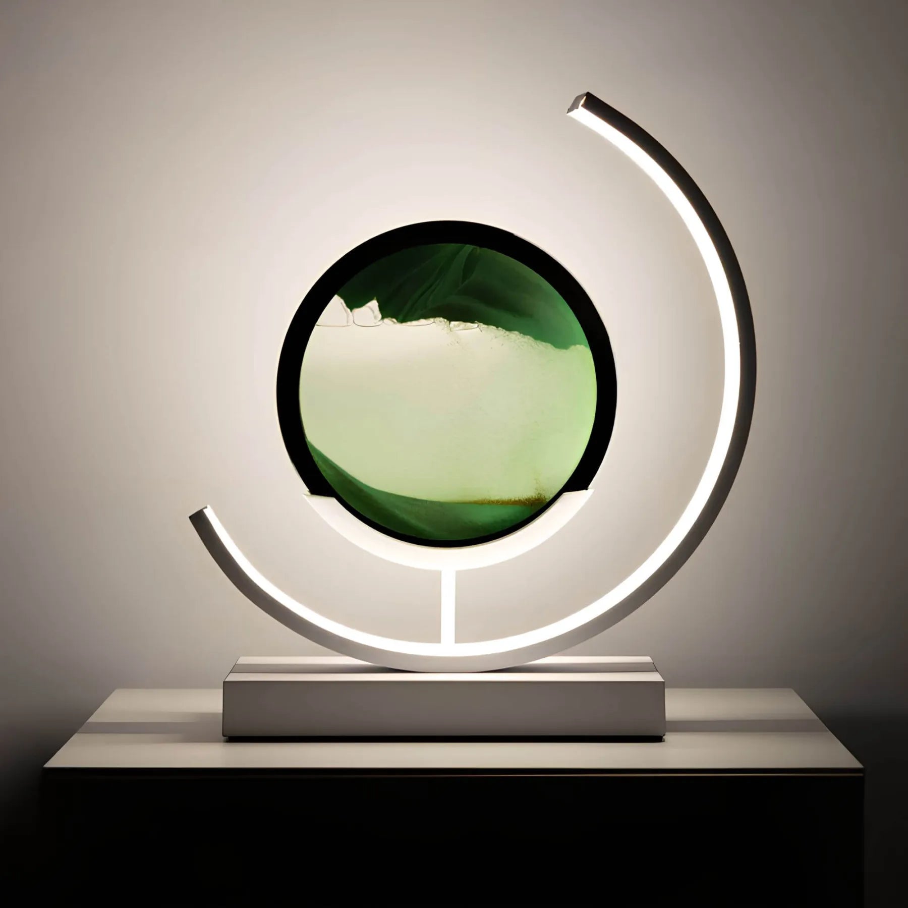 De "Sands of Time Minimalist Table Lamp" brengt niet alleen licht in je huis, maar ook een bewegend kunstwerk van zand dat elke dag nieuwe patronen creëert en je creativiteit inspireert.